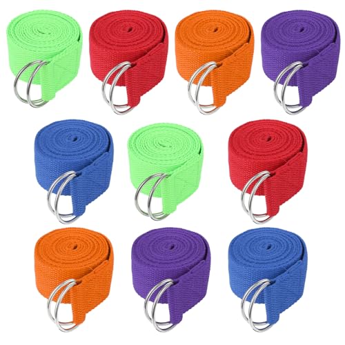 10 Pcs Yoga Strap for Stretching Bulk 6ft Exercise Stretch Band with Metal D Ring Adjustable Pilates Non Elastic Yoga Stretch Belt for Women Men Physical Fitness Gym Workout Dance
