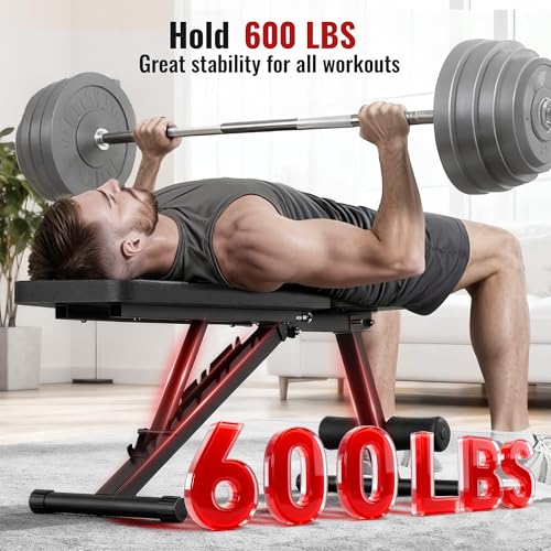 Adjustable Weight Bench for Home Gym Dumbbell Exercise, 600LBS Stable Incline Decline Flat Bench for Full Body Workout, Foldable Workout Bench with Resistance Bands for Bench Press Strength Training