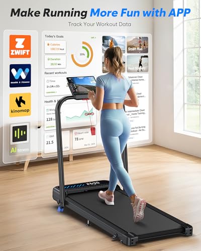 【Designed for Space-Saving】No assembly required—this portable treadmill is ready to use right out of the box. Its slim, sturdy design and smooth-rolling wheels make it easy to move and store under sofas, desks, or beds (just 5.0″ tall when folded). You can also place it against a wall, making it perfect for small apartments, dorm rooms, or any tight space.