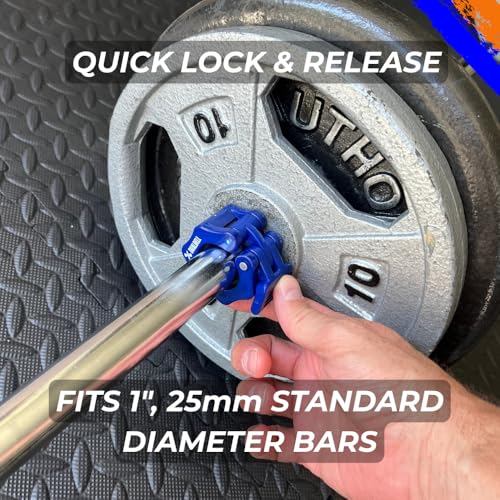 Dualbell Weight Collars, Quick Release Barbell Clamps for 1″ Standard Diameter Bars, Exercise Collars Fit 1″(25mm) Quick Lock Pair of Collar Clips for Home Gym Weightlifting Fitness Training (Blue)