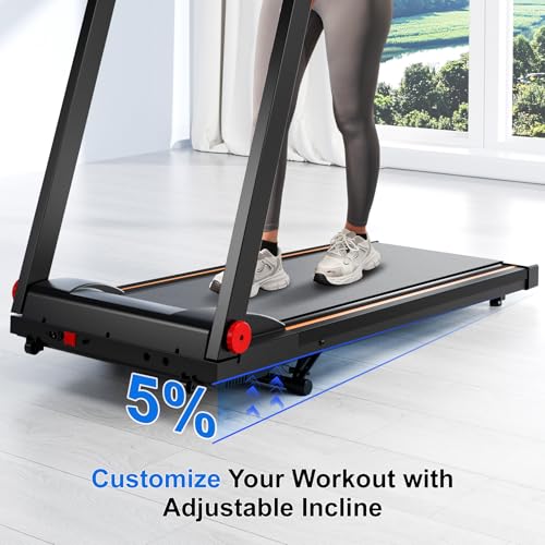 Space-Saving Foldable Treadmill with Secure Handles: Easily fold this compact treadmill into a slim, space-saving shape that slides neatly under a sofa or bed. Integrated transport wheels and safety handles make moving and storing this small treadmill simple, perfect for tight spaces. Whether used as a walking treadmill or for more intense sessions, it’s designed to be a practical incline treadmill for home that supports safe, efficient fitness in any room.