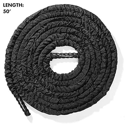 Philosophy Gym Exercise Battle Rope with Cover and Anchor Kit for Fitness Training, Conditioning