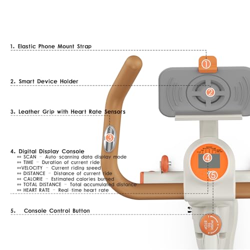 This WELLG indoor cycling bike transforms your home into a personal fitness studio with professional-grade features designed for serious workouts. Built with a sturdy frame that supports up to 265 pounds, this stationary bike accommodates users under 6’2″ comfortably. The leather handlebars feature integrated heart rate sensors that provide real-time monitoring during your workout sessions. The comprehensive digital display console tracks essential metrics including scan mode, workout time, current speed, distance traveled, estimated calories burned, total accumulated distance, and live heart rate data. Smart connectivity features include an elastic phone mount strap and dedicated device holder, allowing you to stream classes or entertainment while exercising. The console control button provides easy access to all functions, while the comfortable padded seat ensures extended workout sessions remain enjoyable. This cycling bike combines durability, technology, and comfort to deliver an exceptional indoor cycling experience for fitness enthusiasts of all levels.
