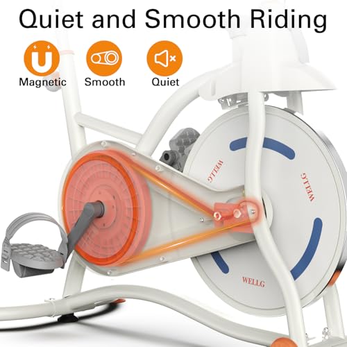 WELLG Exercise Bike Indoor Cycling Bike with Digital Display, Heart Rate Sensors, Phone Mount, 265 LBS Weight Capacity