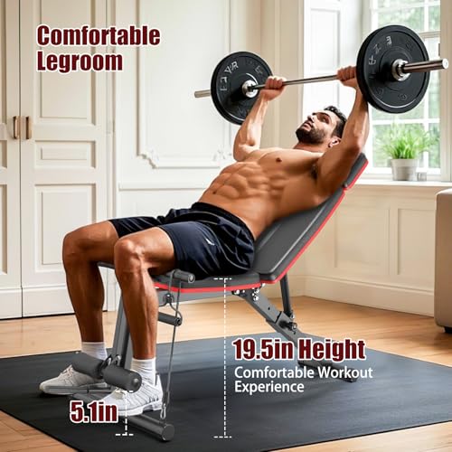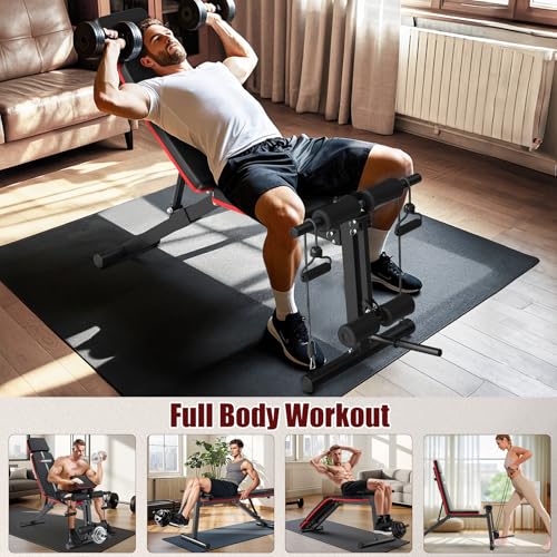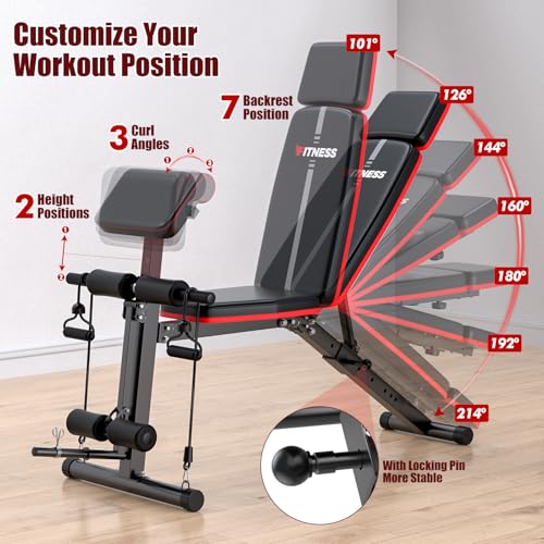 XDDIAS Adjustable Weight Bench, Workout Bench with Leg Extension and Preacher Curl Pad, Weight Bench for Home Gym, Foldable Exercise Bench, Quick Adjustment Incline Bench Press