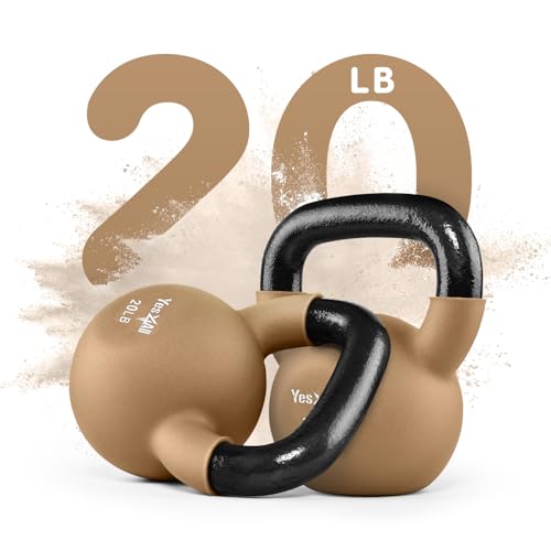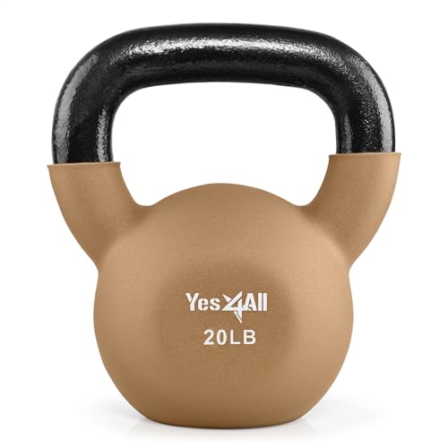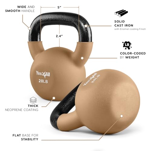 Yes4All Kettlebell, 5-65 LB Neoprene Coated Cast Iron Kettlebells, Wide Grip Handle & Flat Bottom for Swings, Squats, Deadlifts, Push Ups & Full Body Training at Home Gym – Single & Set